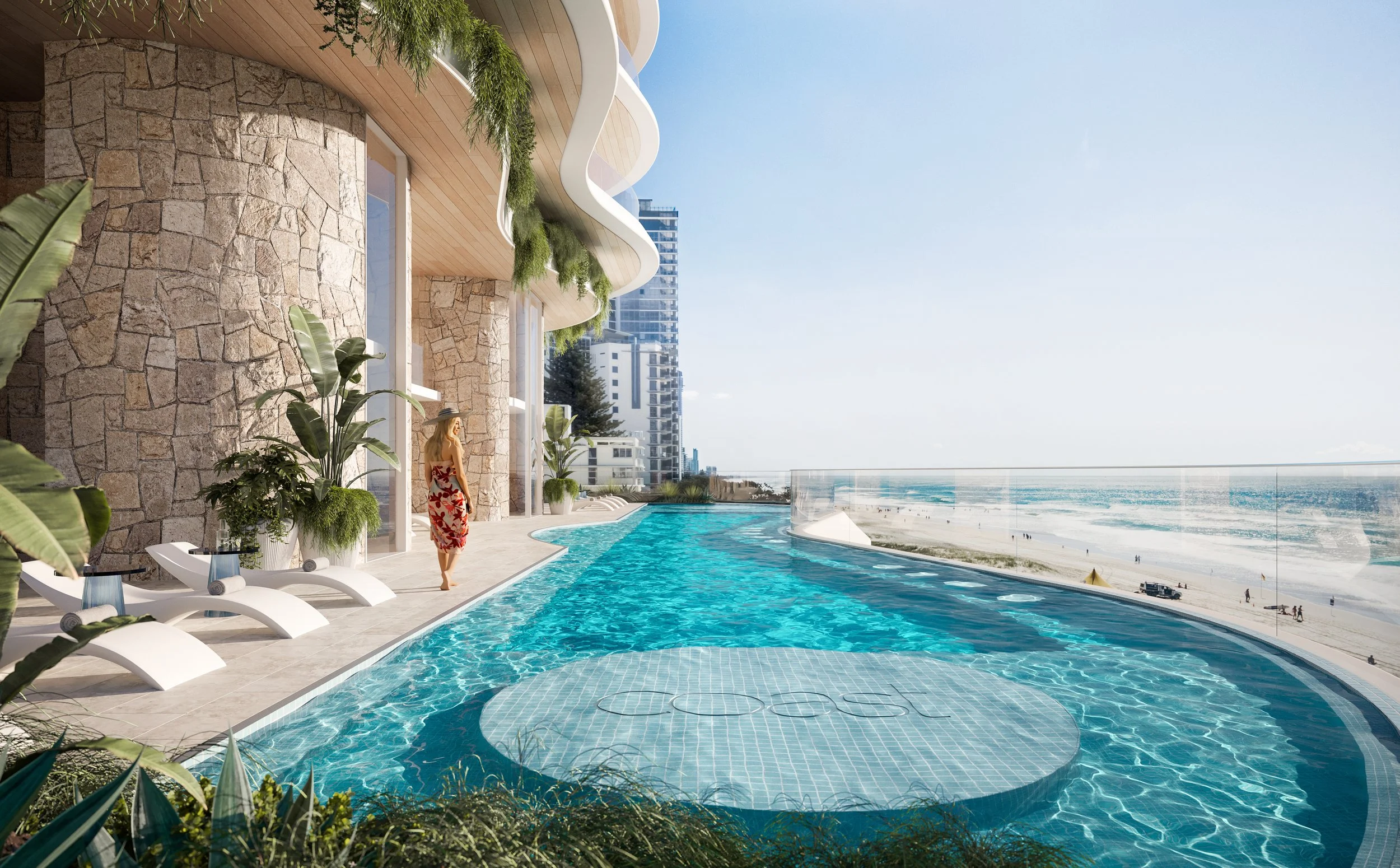 COAST is already stamping its mark to become the Gold Coast’s premier address, comprising the most luxurious amenities such as a 32m wet edge pool that wraps from the east to north, wellness facilities including a yoga studio, massage rooms and sauna, function facilities, residential beach bar and breakout areas and a commercial sized gym.