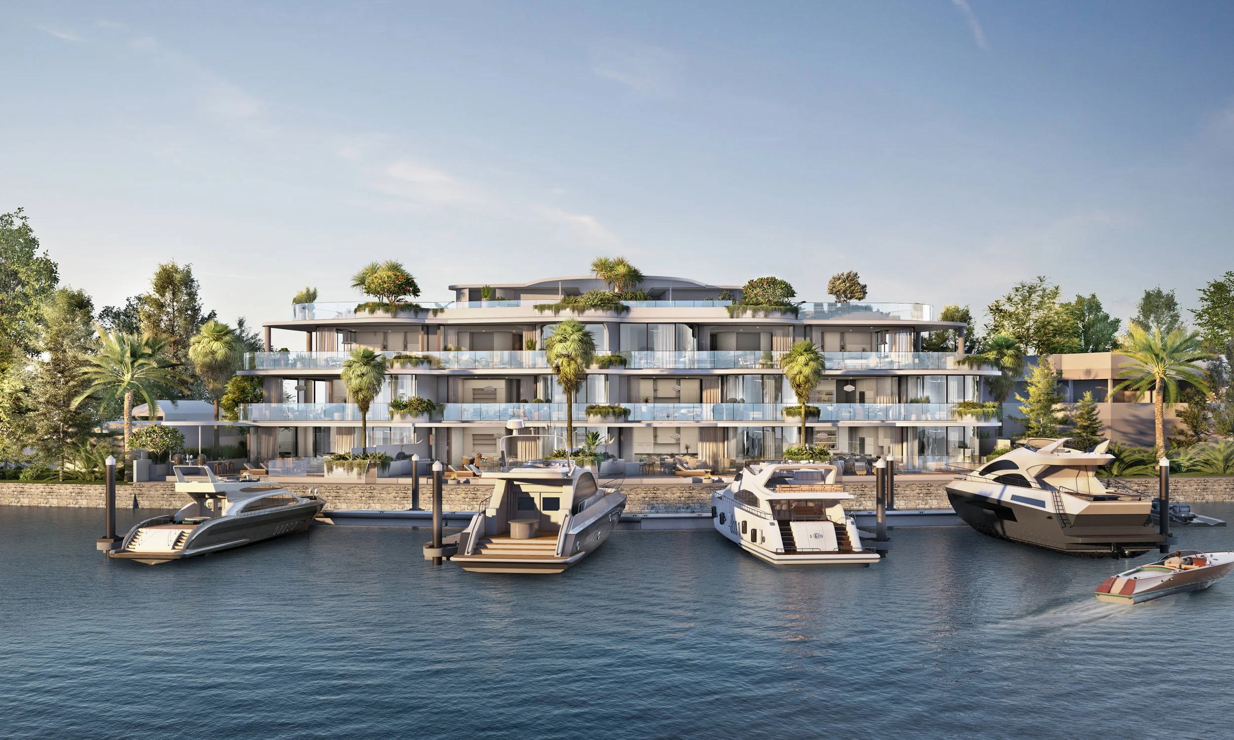 Each residence will offer three to four bedrooms and feature thoughtfully designed floorplans that offer expansive living spaces, complemented by private marina berths providing direct access to The Broadwater and ocean.
